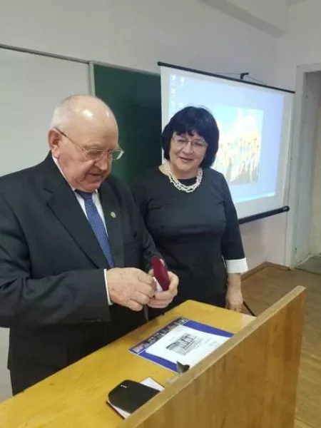 Початок конференції та форуму ознаменований гарною подією: перший віцепрезидент, головний учений секретар НАН ВО України, професор Раду Процюк рішенням Президії нагородив декана факультету Жанну Вірну медаллю імені святого Володимира.