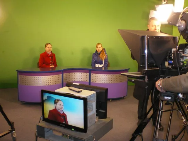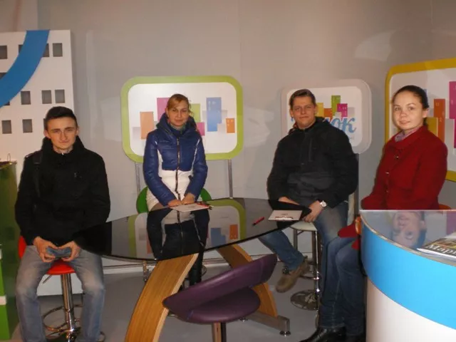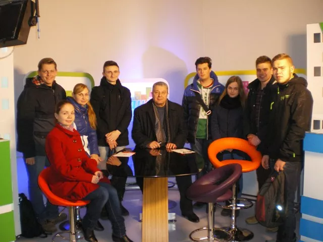 На звершення практичного курсу студенти відвідали студію місцевого телебачення. Директор Микола Генсецький надав можливість нам побачити справжню роботу ведучих, специфіку проведення прямого ефіру, роботи з суфлером й ін. Студенти спробували себе в ролі телеведучих новин.