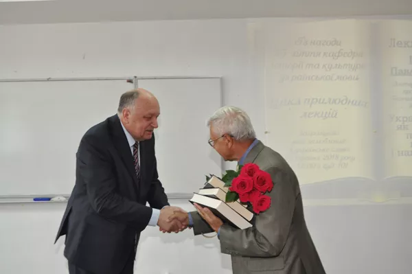 Представила гостя та колегу товариству завідувач кафедри історії та культури української мови, професор Світлана Богдан. Перш ніж розпочати лекцію, Павло Юхимович від імені колег та учасників міжнародної конференції з діалектології привітав професора кафедри історії та культури української мови Григорія Аркушина із 70-літтям і подарував тритомне видання «Український лексикон». А самого ювіляра схарактеризував як видатного мисливця за українським словом, волинянина, який так залюблений у рідний край і так залюблений у рідне слово, що ця внутрішня енергетика передається у його словниках, у його статтях, навіть у його поставі.