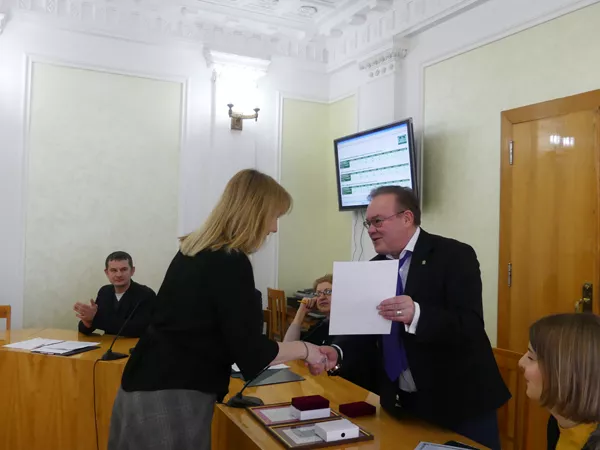 Крім того, диплом доктора економічних наук отримав доцент кафедри аналітичної економіки та природокористування Костянтин Павлов, атестат професора – доктор історичних наук, професор кафедри всесвітньої історії Людмила Стрільчук. Костянтину Павлову та професору, завідувачу кафедри аналітичної економіки та природокористування Олені Павловій ректор вручив Почесні грамоти Національної служби посередництва та примирення.
