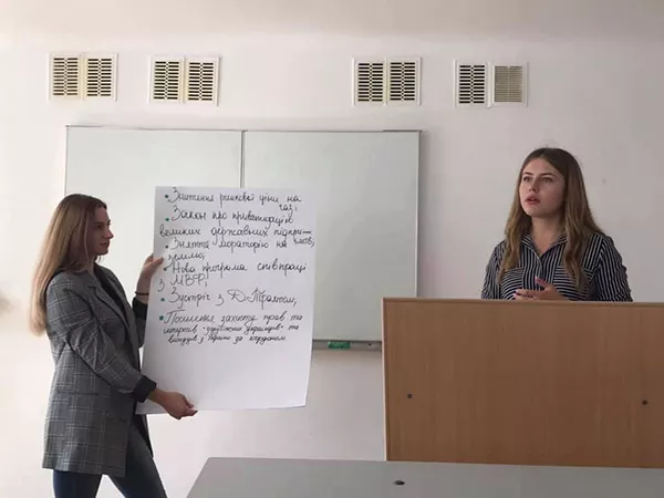 На першому ж занятті з «Аналізу та прогнозування зовнішньої політики» професорки Антоніни Шуляк відбулася… перша модульна контрольна робота! Студенти спеціальності «Міжнародні відносини» представили передбачення щодо дій Міністерства закордонних справ на найближче півріччя. Кожна група презентувала свої припущення, спираючись на дії попереднього складу МЗС і власні спостереження, а також аналізуючи заяви керівників департаментів. Отже, чекаємо кінця семестру, щоб порівняти реальні зміни з прогнозами студентів.