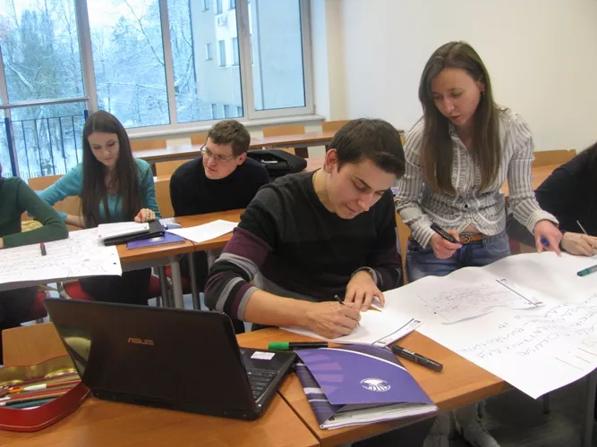 Наступного дня познайомилися з доктором Монікою Вавженьчик-Кулік. Це настільки енергійна людина та цікавий лектор, що після її пар ми були сповнені сил і знань для нових кар’єрних звершень. На заняттях пані Моніки усі студенти брали активну участь в обговоренні, шукали способи вирішення різних проблем на підприємствах, ділилися на команди, змагалися між собою... Тобто, лекції були не лише результативними, а й веселими.