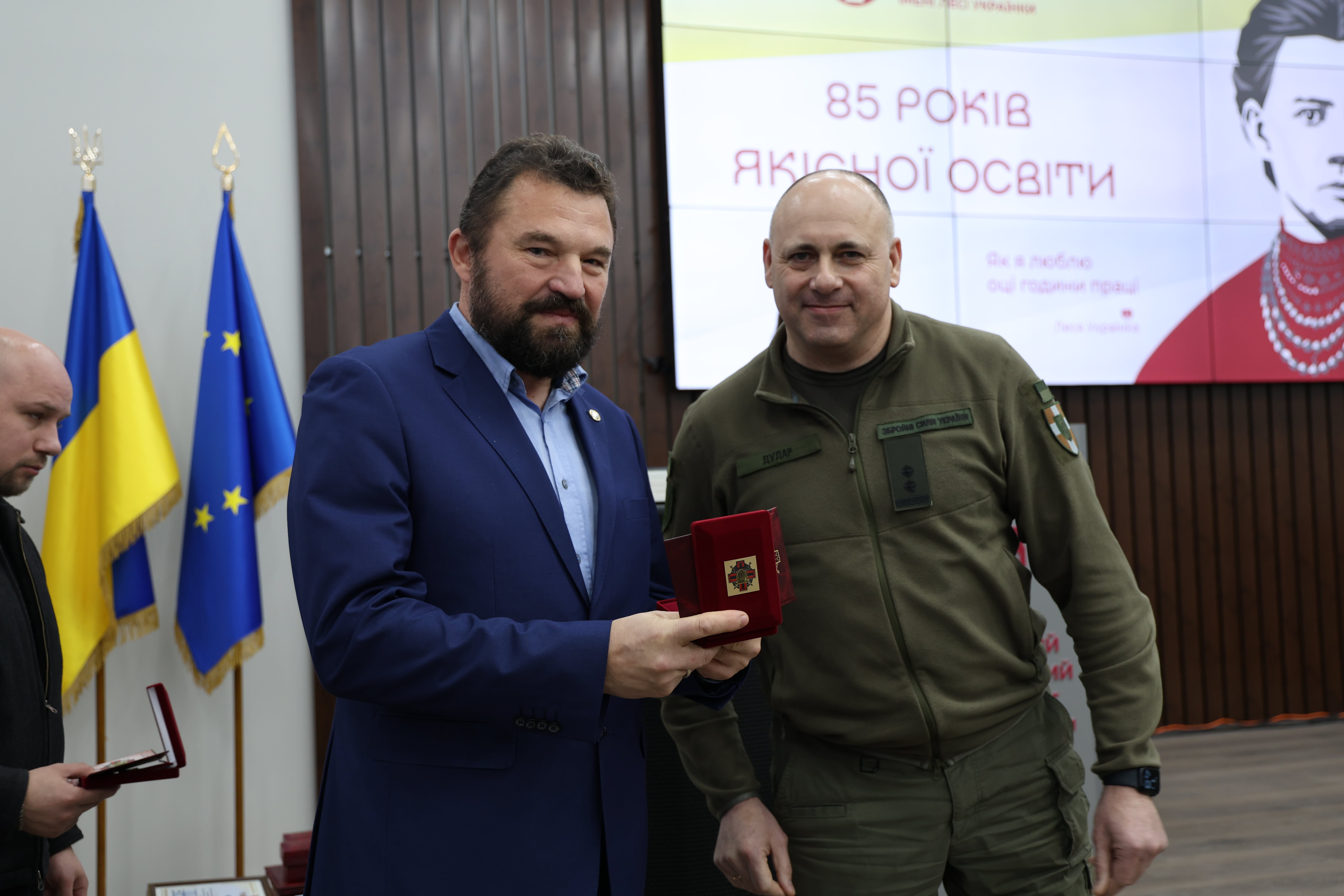 Послідовна позиція ректора формує цілісну стратегію взаємодії, у якій освітня спільнота й оборонці держави діють як єдина команда. Підтвердженням цієї співпраці стало те, що з нагоди 85-річчя університету військовослужбовці висловили вдячність університетській громаді за постійну підтримку та високу громадянську активність.  Серед почесних гостей – заступник командувача угруповання військ «Захід» з контрдиверсійної боротьби полковник Василь Боянівський та заступник командира з психологічної підтримки персоналу підполковник Олег Дудар. У межах заходів відбулося нагородження працівників університету особливо цінними відзнаками, які підтверджують їхній внесок у підтримку національної ідентичності, патріотичного виховання та зміцнення громадянської свідомості студентської молоді.