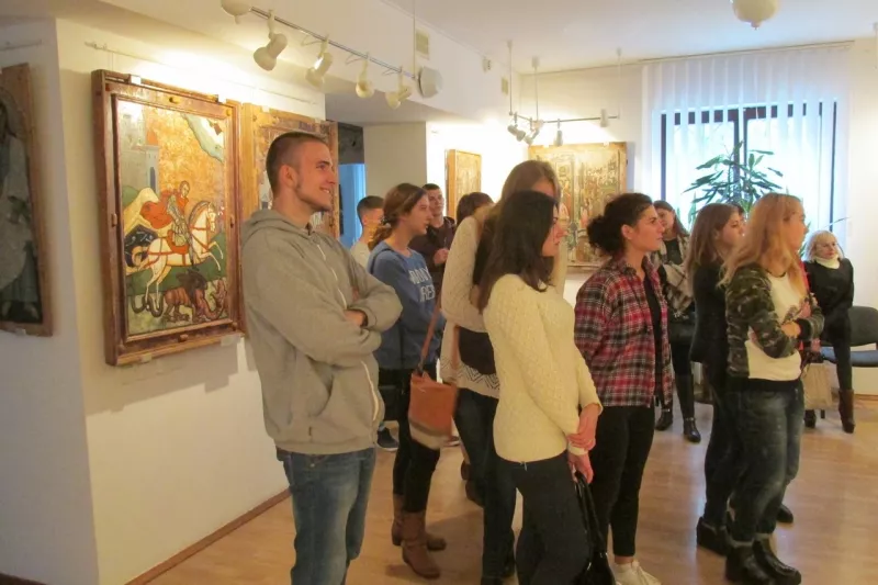 Студенти-видавці 2 та 3 курсів у супроводі викладачів кафедри соціальних комунікацій Марії Рожило та Наталії Шульської побували на навчально-пізнавальній екскурсії у Музеї волинської ікони та ПРАТ «Волинська обласна друкарня». Ангеліна Вигоднік – провідний науковий співробітник музею розповіла історію створення ікон, про їх світських майстрів та навіть епізод із «Житія святих». Нам як відвідувачам, котрі до такого незвичайного закладу потрапили вперше, було цікаво вдивлятися в лики святих, вивчати кольорову гаму ікон, яка вражала своєю стриманістю. Від розповідей екскурсовода студенти дізналися про техніку «плаві» (світлі кольори накладають на нижні, темніші). Звичайно ж, у музеї є декілька ікон, які не дуже добре збереглися, але хіба людина, яка приходить за допомогою, дивиться на їхню досконалість? В останньому залі студенти-видавці побачили на власні очі унікальну пам’ятку історії та культури – ікону Холмської Богоматері, написану в Костантинополі ще в Х столітті.