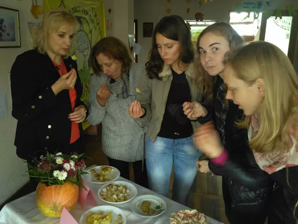 А тим часом хол факультету замайорів осінніми кольорами. Свої квіткові композиції з хризантем, морозника, калини і гарбузів виготовили студенти кафедри лісового та садово-паркового господарства. Особливу увагу заслуговує мобільна композиція із сукулентів з елементами епіфітного бонсай.