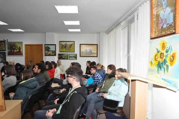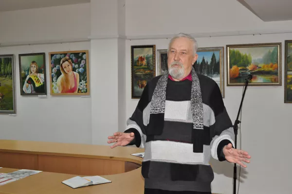 Присутні на заході мали змогу познайомитись із життєвим та творчим шляхом пана Миколи, а також довідатись від художника, в чому криється секрет його спіху.