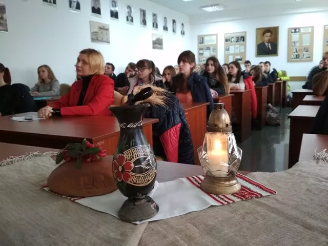 Про страшні сторінки нашої історії розповіли студентський декан Марта Гафурова і член студентського активу Тетяна Морозюк, всі присутні переглянули фільм про страшні роки Голодомору, та вшанували пам’ять жертв хвилиною мовчання.