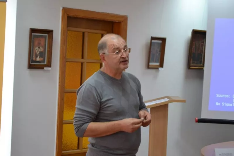 Лекцію на тему «Етичне лідерство та менеджмент» прочитав Михайло Мельник. «Уявімо ситуацію: людина потрапляє в обставини, коли від неї очікують лідерських рішень. Ці рішення складні, неоднозначні, вони не можуть задовольнити всі сторони, їхні наслідки складно передбачити… І вона виявляється до них просто неготовою, неспроможною брати на себе відповідальність. Чого ж саме не вистачає та які є шляхи розвитку лідерського потенціалу? Коли ми шукаємо відповіді на ці питання, дуже корисною виявляється розмова про цінності. Мова не про те, що зазвичай є “на фасаді”, а про дійсно глибинні речі, які, власне, й визначають наші рішення чи відмову приймати рішення», – відзначив М. Мельник.