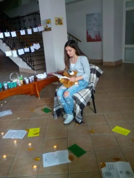 Програма містила в собі читання власних поетичних і прозових творів, запашний чай, плед, печиво. Антураж зустрічі набув магії завдяки маленьким свічкам і жовтим листочкам, котрі немовби символізували немовби «листопад слів», що торкнув серця кожного із присутніх. А додавав усім настрою талісман дійства – плюшевий  «поетичний» ведмедик.