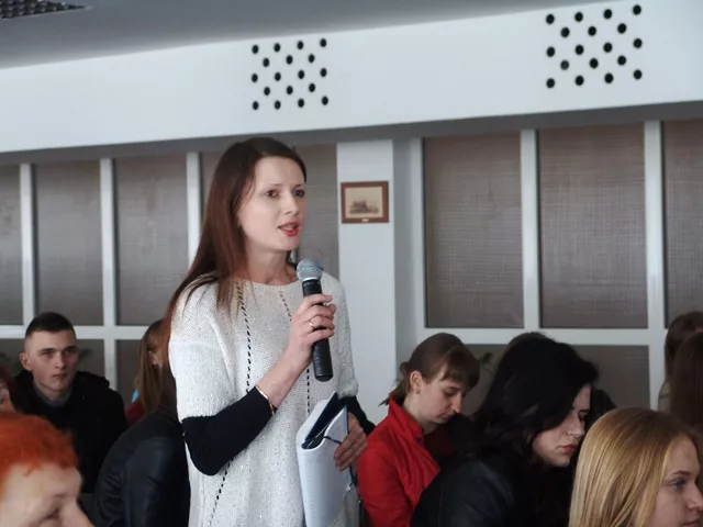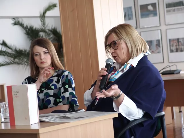 Так було й цього разу – 28 квітня. «Нелюбов» пані Лариси до монологів знову відіграла надзвичайно позитивну роль – зустріч одразу розпочалася як діалог (у цьому – неабияка заслуга як головного редактора «Дня», так і модератора читацької конференції – проректора з науково-педагогічної роботи, євроінтеграції та роботи зі студентами, доцента Анни Данильчук. Із розмови цих двох одухотворених людей присутні довідалися про особливості проведення фотовиставок газети на Сході України – у Дніпрі, а також у безпосередній близькості від фронту (Маріуполь, Слов’янськ). Лариса Олексіївна наголосила, що ці регіони потребують особливої уваги (виявлення лідерів, активних патріотично налаштованих громад, допомога їх у просвітницькій та культурній діяльності, а також рада була повідомити, що за час проведення конкурсів виставок їй пощастило відкрити багатьох цікавих і талановитих фотожурналістів. З приємністю відзначила Лариса Івшина і факт участі книг серій «Україна Incognita» (перша презентація цієї серії відбулася саме у Лесиному виші), «Бронебійна публіцистика», «Підривна література» у навчальному процесі Волині. Зрозуміло, що йшлося й про акцію «Подарунок рідній школі».