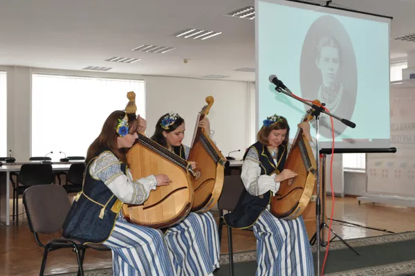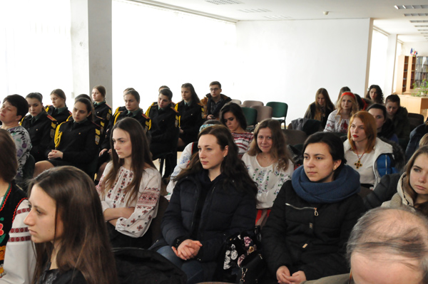 Твори двох українських Геніїв прозвучали у виконанні переможців недавніх конкурсів, які відбулися у Лесиному виші – читців поезій нашої Патронеси (22 лютого) і Великого Кобзаря (15 березня). Неповторні грані творчості Світочів української літератури розкривали Лілія Шульгач (економічний факультет, І місце в конкурсі читців поезій Лесі Українки), Яна Михальчук (географічний факультет, ІІ місце в конкурсі читців поезій Лесі Українки), мистецький тандем у складі Євгенії Сухорукої та Інни Кошулинської (факультет філології та журналістики, Гран-прі в конкурсі читців поезій Лесі Українки), Наталія Марчук (факультет філології та журналістики, ІІІ місце в конкурсі читців поезій Лесі Українки і Гран-прі в аналогічному Шевченківському конкурсі), Ірина Загорська (факультет філології та журналістики, Гран-прі в конкурсі читців поезій Тараса Шевченка), Ірина Борис (юридичний факультет, І місце в конкурсі читців поезій Тараса Шевченка), Сюзанна Пеншина (юридичний факультет, ІІ місце в конкурсі читців поезій Тараса Шевченка), Карина Москвич (факультет філології та журналістики, І місце в конкурсі читців поезій Тараса Шевченка). А лауреати Всеукраїнських і Міжнародних конкурсів та фестивалів – тріо бандуристок СНУ «Дивоструни» у складі Катерини Ковальчук, Алли Клімук і Наталії Чернецької (керівник – професор Мирослава Сточанська), – дарували слухачам пісенні перлини Кобзаревої та Лесиної творчості. Завершилося дійство виконанням «Заповіту» Тараса Шевченка.