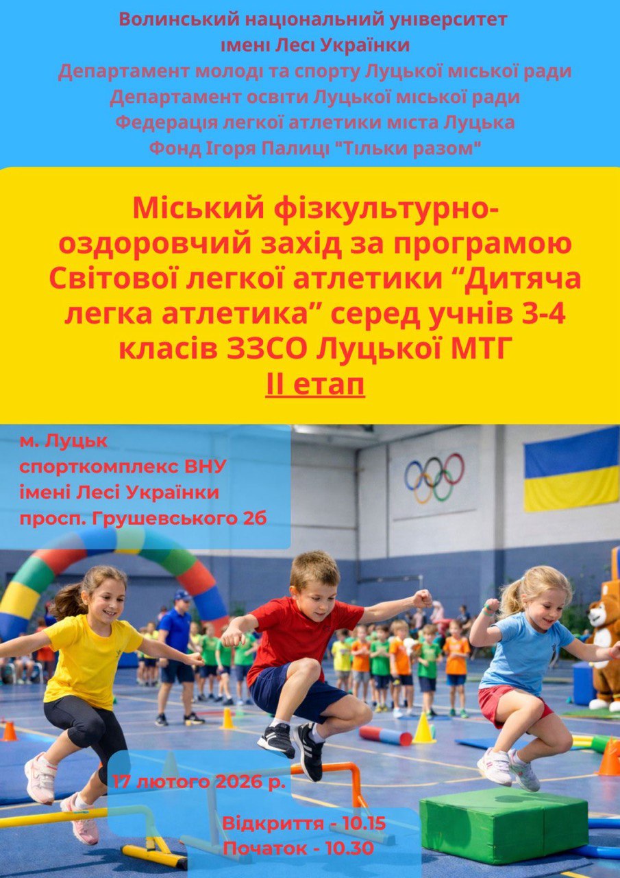 У спорткомплексі Волинського національного університету імені Лесі Українки відбувся практичний семінар для вчителів фізичної культури, присвячений організації та проведенню змагань за програмою Світової легкої атлетики «Дитяча легка атлетика» серед учнів 3–4 класів закладів загальної середньої освіти Луцької міської територіальної громади.