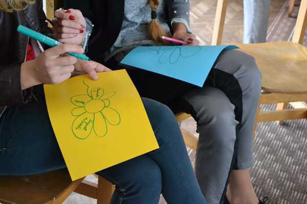Розпочався захід із вправи «Сила квітів», яка мала за мету розвинути розуміння зв’язку з потребами людини, особистим благополуччям і правами людини, зміцнити солідарність і повагу до відмінних рис.