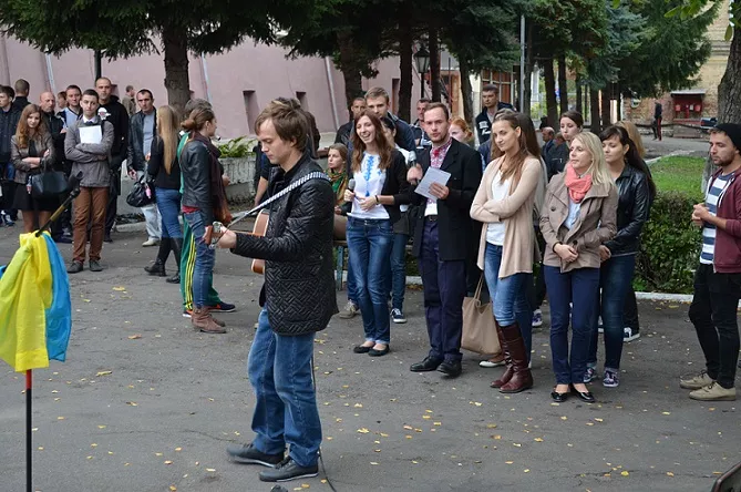 На захід у форматі «Вільний мікрофон» завітала талановита молодь нашого міста, зокрема й наші студенти, які співали для бійців під акустичну гітару, танцювали й декламували вірші, аби розважити й підтримати наших захисників. Свято вдалося на славу!