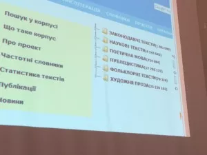 Директор лабораторії комп’ютерної лінгвістики, доктор філологічних наук, професор Наталія Дарчук виступила з доповіддю про корпус української мови, принципи його укладання, структуру та способи анотації.