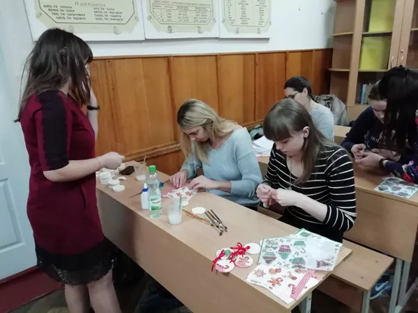 Учасники майстер-класу мали змогу власноруч виготовити новорічну іграшку з фетру та декупаж із солоного тіста, налаштуватися на новорічну атмосферу й отримати позитивні емоції.