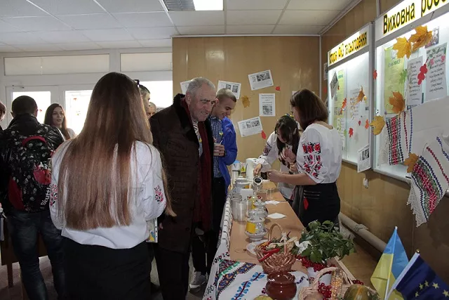 Доценти кафедри фізичної реабілітації Оксана Усова і Наталія Грейда та студенти 23 групи спеціальності «Фізична реабілітація» організували роботу фітобару «Україна в серці кожного». Кожному гостю студенти подарували блакитно-жовте «сердечко», теплий чай, хороші посмішки й дари осені…