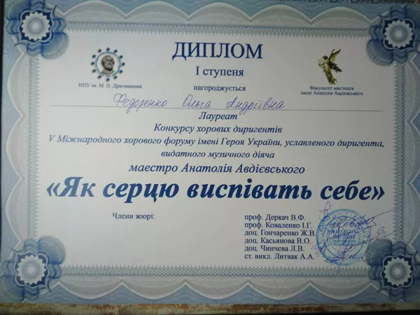 Також у студентському конкурсі хорових диригентів серед 15 учасників звання лауреата І ступеня отримала студентка факультету культури та мистецтв Ольга Федоренко.