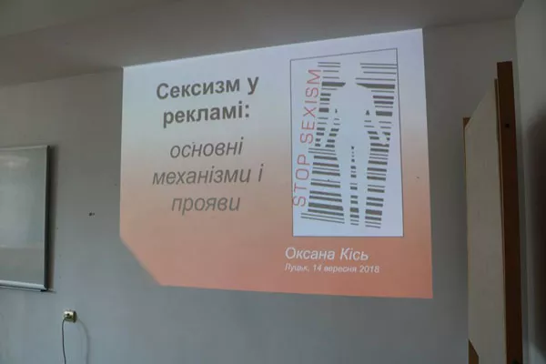Захід за підтримки Українського жіночого фонду організувала ГО «Альтернативна журналістика», члени якої – викладачі та студенти журналістських спеціальностей. Науковиця показала конкретні приклади використання оголеного тіла в рекламі, пояснила, як це впливає на реципієнта. Пані Оксана розповіла, що зображення відверто сексуальних жінок у рекламі чоловічих товарів (наприклад, алкоголю чи будівельних матеріалів) – це гендерна нерівність, адже це понижує роль жінки в суспільстві, показує її пряму залежність від чоловіка. Отже, жінку асоціюють із «сексуальним товаром», який легко продати. Реклама, яка показує так званих «мачо», теж не рідкість; такі зображення вказують на владність чоловіка. Лекторка зауважила, що оголене тіло доречне лише в мистецтві, бо, коли жінку вносять до товарного ряду, її тіло теж сприймають як товар.