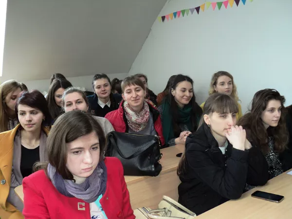 Після цього короткого оригінального представлення настав час практичного втілення висловлених максим. Розмаїття метафор Олени Пашук, філософська глибина поетичних асоціацій Олександра Клименка, езотеричний діалог зі світом архетипів Галини Яструбецької – все це вихлюпнулося, як весняний дощ, на студентів, які, схоже, були цілком готові його сприйняти (от що значить, коли викладачі самі є поетами!). Це видно було і з поставлених запитань, і з верлібрових-таки характеристик творчості кожного з митців, які надали присутні в аудиторії шанувальники поетичного слова (власне, така пропозиція ще на початку зустрічі надійшла від Марії Василівни як стимул до власної творчості). Переможцям цього своєрідного конкурсу – а це другокурсниці Оксана Демчук і Наталія Дмитрук, третьокурсниця Ірина Міщанкевич та четвертокурсниці Світлана Чекеренда та Ірина Семенюк, – було вручено книги з автографами згаданих вище поетів.