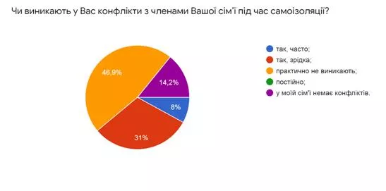 Конфлікти «практично не виникають» у сімей 46,9 % опитаних, «часто виникають» – у 8 %.