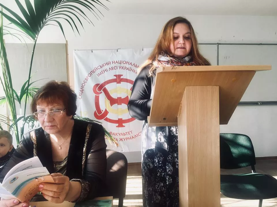 У понеділок, 5 листопада, у Лесиному виші, на факультеті філології та журналістики, відбулася зустріч із волинськими письменниками. У гості завітала Ольга Ляснюк, очільниця Волинської організації Національної спілки письменників України, яка й розпочала захід. Вона зазначила, що незабаром не лише День писемності, а й 38-річчя святкує Волинська організація НСПУ. Першою розповіла про свої книги «Квіти на снігу» та «Етюд з метеликом» Надія Гуменюк. Авторка додала, що до прози прийшла з журналістики, а не з поезії, як зазначають літературознавці. На зустрічі студенти мали нагоду ознайомитися із сюжетом нової книги «Дожити до весни», яку нещодавно презентували в книгарні «Є». Письменниця зачитала кілька віршів, які увійдуть у нову, вже підготовлену збірку.