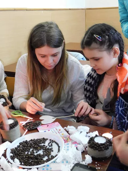 Натхненні першими теплими днями весни члени НТАіС представили майстер-клас, наповнений романтикою, красою і ніжністю. Учасники заходу робили квіти з незвичних матеріалів, таких як насіння гарбузи та серветок, а також створювали сердечка з кави. Чарівну атмосферу доповнили зроблені власноруч свічки з кави.