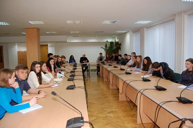 Також цього дня в бібліотеці вишу пройшов круглий стіл «Роль студентства в контексті розвитку України як європейської держави». Модератор заходу – кандидат історичних наук, доцент кафедри країнознавства та міжнародних відносин Андрій Моренчук – на початку засідання поділився власним баченням цієї ситуації. Так, роль молоді, зокрема студентів, без зайвого пафосу, унікальна в державотворенні країни. Найбільші знакові події в історії нашої держави пов’язані саме зі студентством: бій під Крутами, Революція на граніті, Помаранчева революція, Євромайдан тощо.
