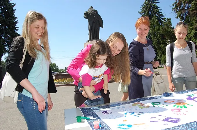 Разом із теплим травневим сонцем студенти, викладачі та навіть перехожі прийшли до стін Лесиного вишу для підтримки мирної акції. Кожен мав чудову нагоду закарбувати відбиток своєї долоні на папері, а також залишити побажання країні.