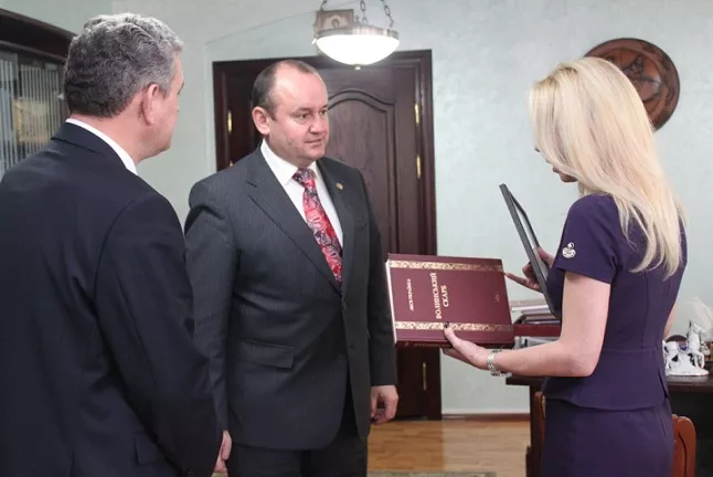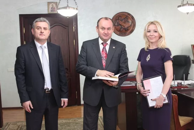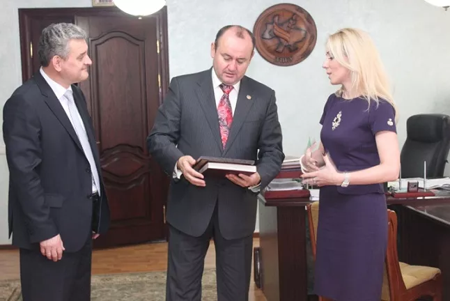 Завідувач кафедри економіки природокористування та економічної теорії Лесиного вишу, професор Олена Стрішенець поспілкувалася з ректором ТНЕУ – професором А. Крисоватим і подякувала Андрію Ігоровичу за плідну співпрацю, а також передала пам’ятний подарунок від ректора СНУ імені Лесі Українки, професора Ігоря Коцана.