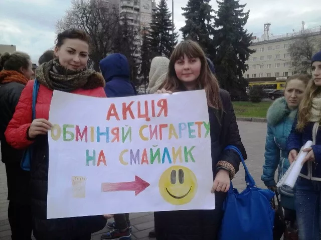 Студенти Східноєвропейського національного університету імені Лесі Українки з плакатами-закликами проти куріння пройшлися вулицею Винниченка, залучаючи до акції всіх охочих та тих, хто курить у громадських місцях; взяли участь у знищенні «умовної цигарки»; поширювали інформаційні матеріали з профілактики куріння. Сподіваємось, що сучасна молодь, усвідомивши небезпеки шкідливих звичок, пріоритетом обере здоровий спосіб життя.