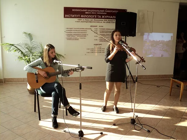 Того ж дня під орудою доцента кафедри історії та культури української мови Руслани Омельковець відбулася благодійна мистецько-патріотична акція «З Україною в серці» за участю студентів інституту мистецтв та біологічного факультету, яким викладачі згаданої кафедри читають навчальний курс «Українська мова за професійним спрямуванням». Поезія, музика, бойовий гопак, дефіле вишиванок – усе це переконливо засвідчило, що за усієї відкритості світовій спільноті (вірші й пісні лунали і рідною, і мовами різних народів планети), найближча для українця материнська мова, пісня, непроминущі національні цінності. Було здійснено збір коштів на придбання теплого одягу для вояків АТО та медичної техніки для Луцького гарнізонного військового шпиталю.
