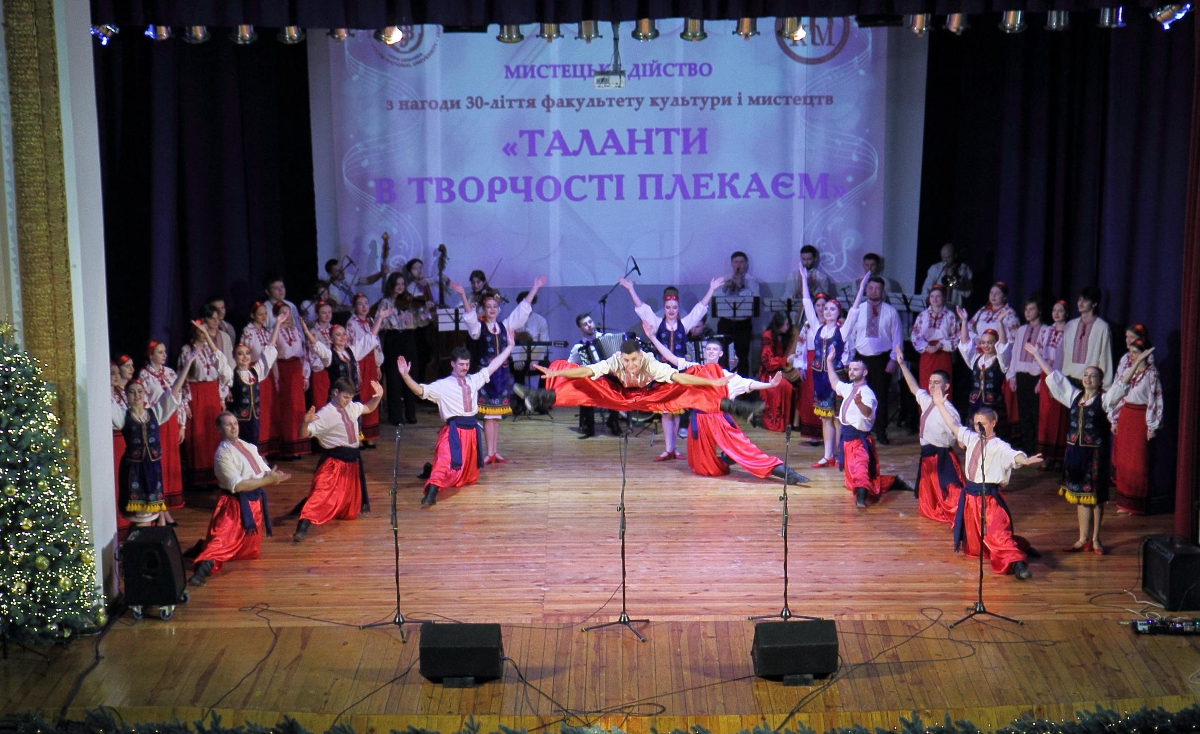 Декан факультету культури і мистецтв Віталій Охманюк виголосив вітальне слово: «Дуже приємно бачити всіх гостей, особливо наших випускників, що приїхали здалеку на концерт, аби нас побачити та почути. 30 років для факультету: це багато чи мало? Тут факти говорять за себе, адже більшість наших викладачів – це минулі студенти факультету культури і мистецтв. Я сподіваюся, що ми будемо й надалі розвиватися. Найголовніші винуватці сьогоднішнього свята – це наші студенти. Їм велика вдячність за те, що вони залишилися в Україні та продовжують навчатися задля подальшої розбудови нашої країни і культури».