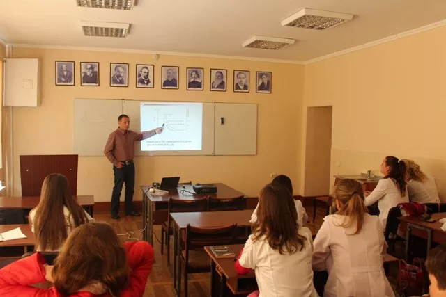 У четвер кафедра фізіології людини і тварин презентувала свої заходи. Відбувся день відкритих дверей лабораторій кафедри з функціональної діагностики організму людини. Студенти прослухали відкриту лекцію доцента Мотузюка О. П. на тему «Потенціал дії. Проведення по нервових волокнах» та взяли участь у науковому семінарі «Науково-інформаційні ресурси в біології» (Степанюк Я. , Онисько Г., Єдинак О.). Інформативно та цікаво пройшла виставка-презентація нових наукових та навчально-методичних видань співробітників кафедри фізіології людини і тварин.