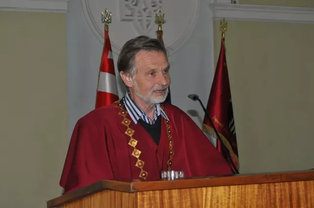 Академік-секретар Відділення вищої освіти НАПН України, професор Петро Саух привітав усіх присутніх із важливою подією у житті та передав вітання та найкращі побажання від президента НАПН України Василя Кременя. Петро Юрійович зауважив, що професор, який звершує викладацьку діяльність, відриває від себе частинку інтелекту та віддає її своїм студентам: «Бажаю вам гармонії зі світом, яку можна отримати дотримуючись певних правил: дивитися назад, тобто з вдячністю згадувати тих, хто вклав у вас свої знання, хто вів до омріяної мети; дивитися вперед із надією, вгору – з вірою, а навколо – з любов’ю. Хай вам щастить, а інтелект буде підключений до “високовольтної лінії”».