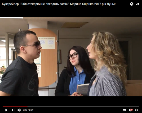 Цьогоріч на всеукраїнському конкурсі книжкової реклами «Book fashion», що проходив у місті Києві, було презентовано і творіння наших студентів-четвертокурсників напряму «Видавнича справа та редагування». Ідеться про буктрейлер на книгу Марини Єщенко «Бібліотекарки не виходять заміж» (2017). Автор та режисер сценарію – Анжеліка Щербина (ВС-45).