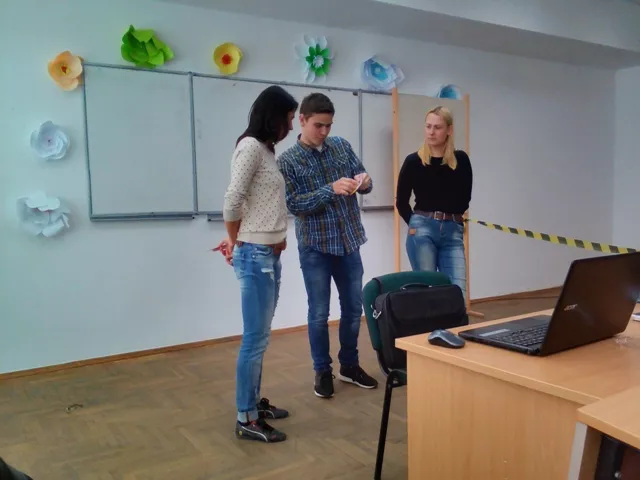 На презентації авторка детективів шокувала присутніх незвичною інсталяцією: в куточку під стіною аудиторії лежав «труп» людини, накритої простирадлом, просоченим кров’ю. Таке незвичне видовище заінтригувало та викликало інтерес до самої авторки та її твору. А письменниця продовжувала інтригувати: вона роздала юнакам і дівчатам картинки із зображенням місця злочину та жертви й закликала провести спільне розслідування з метою визначення – вбивство це чи самогубство. Молодь взялася до роботи… Гаряче дискутували, обговорювали різні версії й обґрунтовували прийняті рішення.