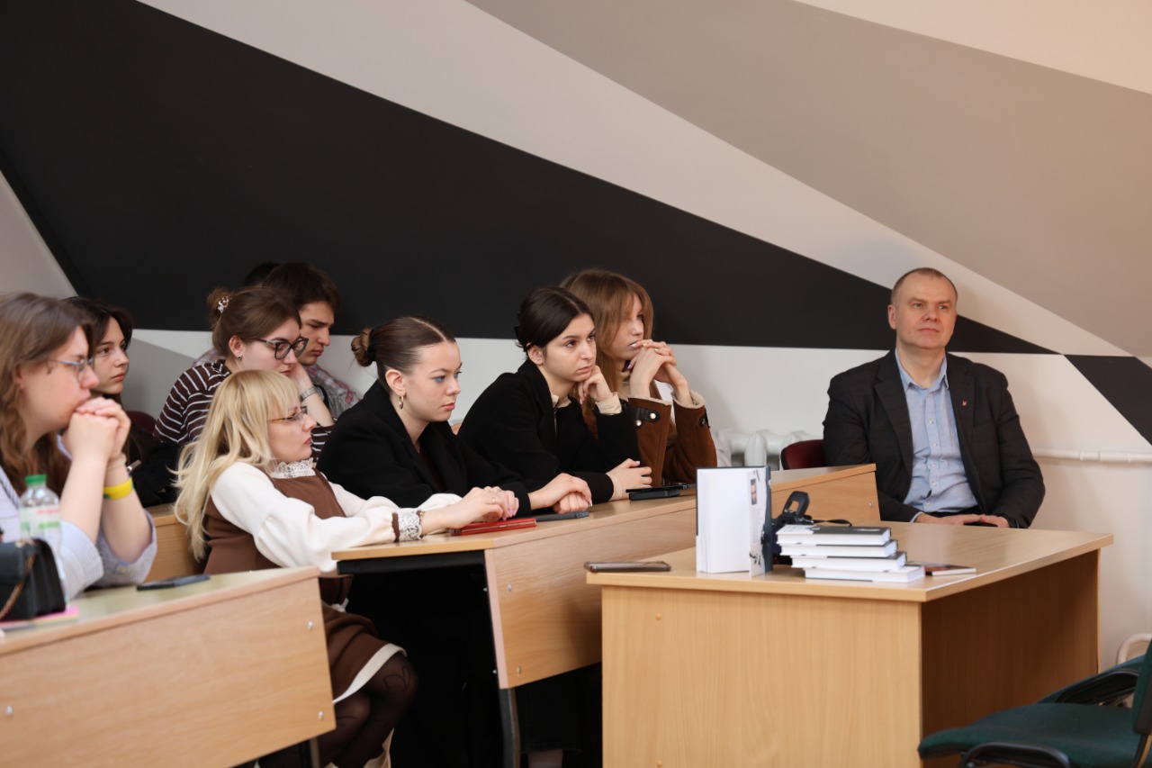 Серед присутніх на зустрічі – декан факультету філології та журналістики Віктор Яручик, доцент кафедри соціальних комунікацій Наталія Шульська, доктор філологічних наук, професор кафедри української літератури Галина Яструбецька, а також студенти.
