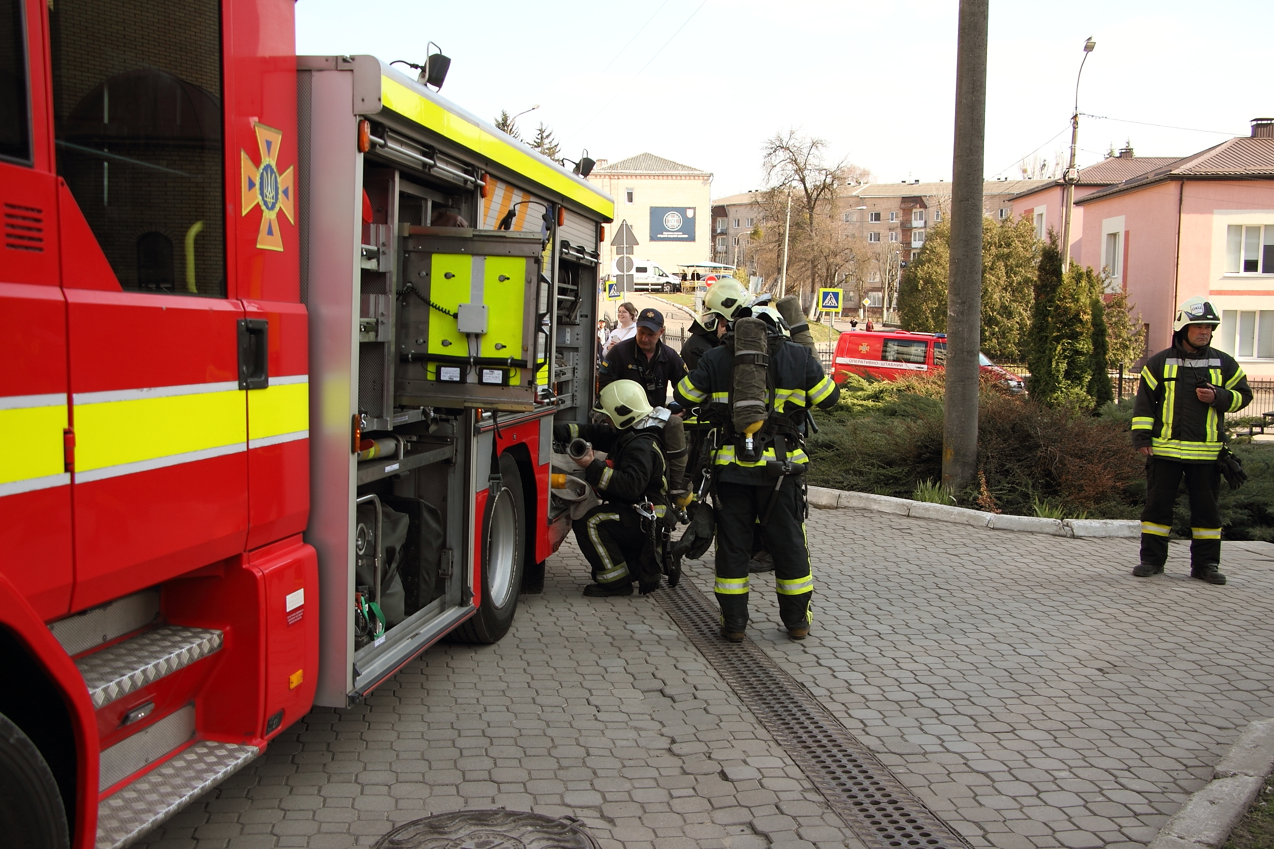 Умовна пожежа виникла на восьмому поверсі в одній з аудиторій. Після прибуття підрозділів було проведено розвідку, оцінено обстановку й організовано гасіння. Паралельно відпрацьовували евакуацію учасників освітнього процесу та дії відповідальних посадових осіб університету.