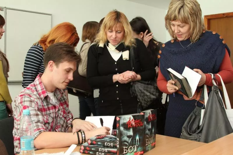 28 березня до інституту філології та журналістики завітав молодий та амбітний письменник Макс Кідрук зі своїм технотрилером «Бот». Родом хлопець із Рівного, потім переїхав до Києва, згодом до Стокгольма, а далі почалося втілення мрії – подорожування світом. Макс відчув на собі культуру, місцевість та природу близько тридцяти країн. За освітою хлопець інженер-енергетик, але враження від подорожей мимоволі вилилися у першу художню книгу «Мексиканські хроніки. Історія однієї мрії», а далі пішло-поїхало… Зараз у творчому портфелі автора 11 книг: 7 художніх та 4 технічні видання, але і на цьому Макс не хоче зупинятися, адже світ ще такий великий і незвіданий, потрібно ділитися враженнями від нього і з читачами.