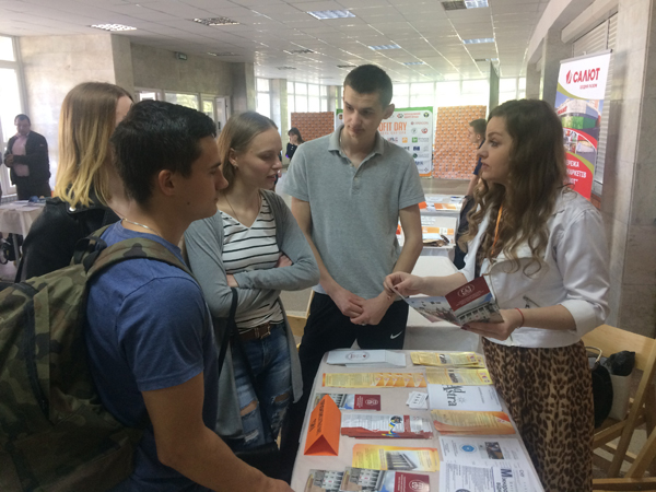 А ось навчальні заклади, які готують спеціалістів, презентували себе та запрошували потенційних абітурієнтів. Профконсультант відділу молодіжної політики та соціальної роботи, кандидат психологічних наук Тетяна Кулик консультувала молодь з питань професійного вибору, працевлаштування, знайомила із ситуацією на ринку праці, розповідала про освітні види профконсультаційної діяльності у Східноєвропейського університету імені Лесі Українки, пропонувала студентам допомогу в підготовці резюме, давала поради щодо проходження співбесіди з роботодавцем.