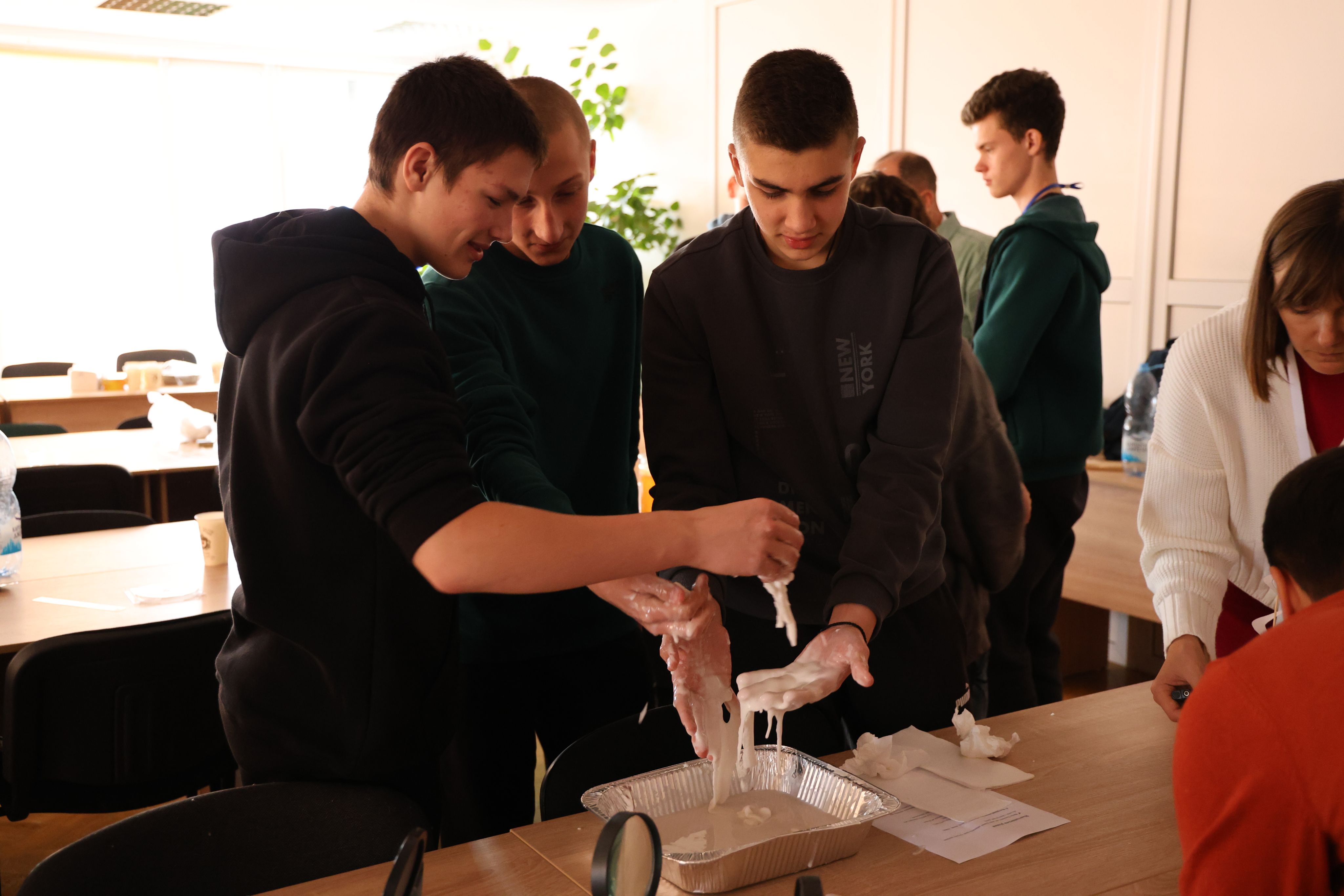 Під час дослідів школярі спостерігали ефектні експерименти з рідким азотом – заморожування квітів, утворення азотного диму, крихкість повітряних кульок – а також побутові фізичні явища, що показують, як наука працює у нашому щоденному житті.