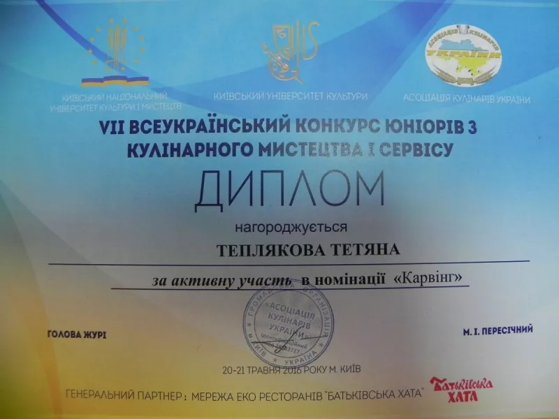 20–21 квітня студенти Коледжу технологій, бізнесу та права СНУ імені Лесі Українки були учасниками VІІ Всеукраїнського конкурсу юніорів з кулінарного мистецтва і сервісу, який відбувався на базі Київського національного університету культури і мистецтв.