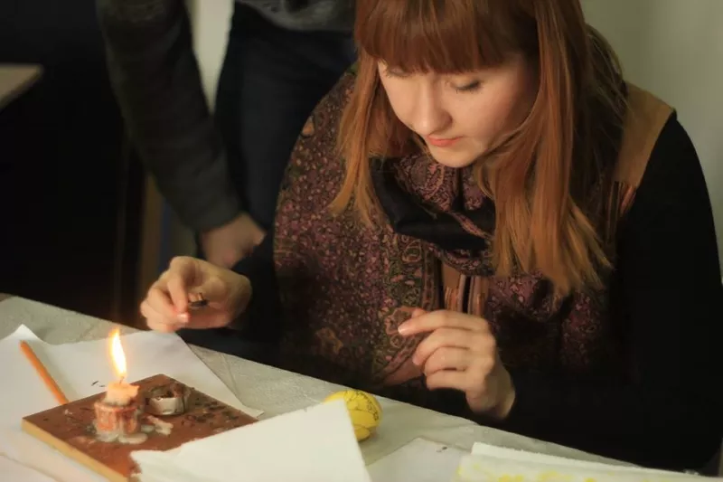 У затишній атмосфері кабінету декоративно-прикладного мистецтва учасники майстер-класу мали змогу створити власну писанку в традиційній восковій техніці.