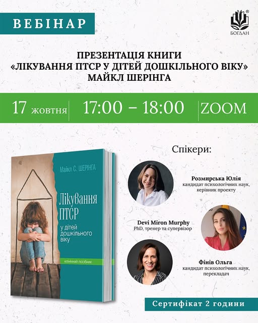17 жовтня відбувся вебінар презентація книги Майкла Шерінга «Лікування ПТСР у дітей дошкільного віку».
