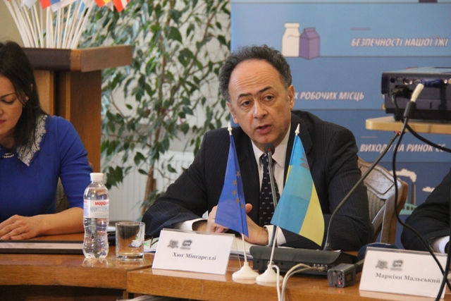 Програмою заходу було передбачено зустріч з головою Представництва ЄС в Україні Хюґом Мінґареллі. Під час виступу пан Посол звернув увагу на те, що сьогодні надзвичайно важливо поширювати інформацію про цілі Європейського Союзу та його діяльність, зокрема, в Україні. Одне з основних завдань Інформаційних центрів –поширення європейських цінностей та підвищення рівня обізнаності українського суспільства щодо розвитку відносин між Україною та ЄС. «Суспільство в Україні особливо активне, і Представництво ЄС вітає тісну співпрацю із громадськими об’єднаннями, які поділяють ідеали та цілі Європейського Союзу», – зазначив Хюґ Мінґареллі. Також Посол наголосив, що Європейський Союз робить усе можливе для того, щоб допомогти Україні зберегти суверенітет і територіальну цілісність. Окрім того, ЄС підтримує реформи (зокрема, в енергетичній та судовій сферах, боротьбі з корупцією, розвитку підприємницької діяльності) і процес створення соціально орієнтованої ринкової економіки в Україні.