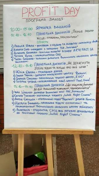 25 жовтня у Палаці учнівської молоді студенти Східноєвропейського національного університету імені Лесі Українки взяли участь у Дні кар’єри для початківців – «PROFIT DAY». Захід був цікавий, насамперед, для тих студентів, які шукають можливості працевлаштування чи бажають визначитись із майбутньою роботою. Окрім ярмарку вакансій25 жовтня у Палаці учнівської молоді студенти Східноєвропейського національного університету імені Лесі Українки взяли участь у Дні кар’єри для початківців – «PROFIT DAY». Захід був цікавий, насамперед, для тих студентів, які шукають можливості працевлаштування чи бажають визначитись із майбутньою роботою. Окрім ярмарку вакансій (можливості поспілкуватись з представниками різних компаній) студенти мали змогу поспілкуватися з експертами на панельних дискусіях.