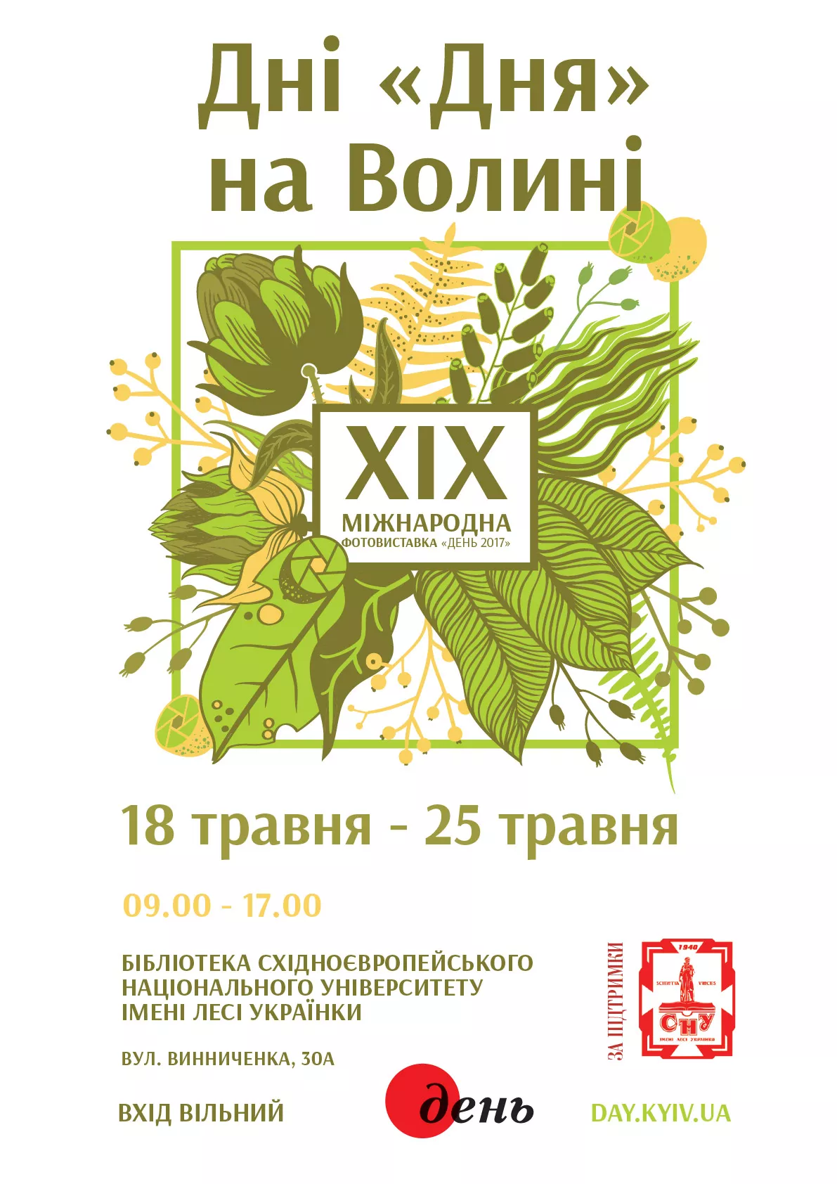 Затишні холи наукової бібліотеки Східноєвропейського національного університету імені Лесі Українки приймуть найкращі світлини Міжнародного фотоконкурсу всеукраїнської газети «День» вже у 13-й раз. Луцьк є особливим містом для «Дня»: тут відбулася свого часу перша після Києва презентація книги «Україна Inсognita», котра дала початок великій бібліотеці газети, тут же проходили всі представлення всіх книжкових новинок видання, власне, просто зустрічі однодумців, які спільними зусиллями будують громадянське суспільство. Луцьк і загалом волинські бібліотеки – cеред рекордсменів по кількості книжкових видань «Дня».