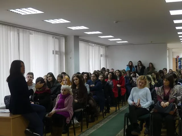 18 лютого студенти факультету філології та журналістики СНУ імені Лесі Українки мали змогу поспілкуватися з головою Комітету Верховної Ради України з питань свободи слова та інформаційної політики Вікторією Сюмар. Разом із нею в університет завітав і народний депутат України Ігор Гузь. Представив гостю студентству декан факультету філології та журналістики Юрій Громик.