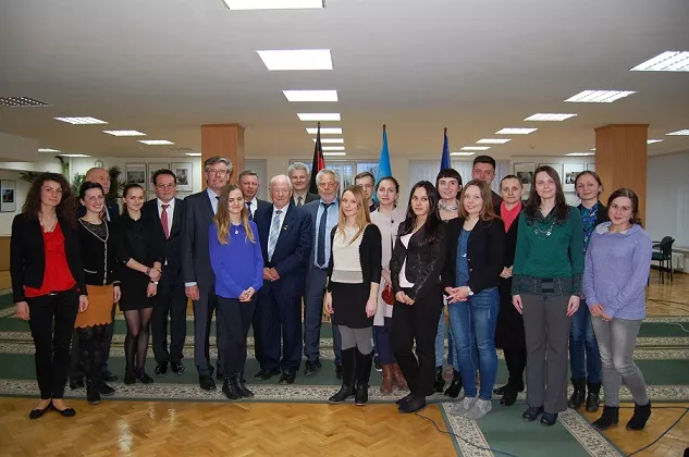 Основною ж метою візиту стала зустріч представників спілки зі студентами та викладачами, яка відбулася в книгозбірні університету. Студенти інституту іноземної філології підготували для гостей презентації про ФРН та поділилися враженнями від проходження стажування в Німеччині. Натомість голова спілки «Мости дружби в Україну» Карл-Герман Крог запевнив студентство, що організація й надалі підтримуватиме молодь, усіляко сприятиме у проходженні стажування на підприємствах й працевлаштуванню студентів у Німеччині. Також висловив слова вдячності колективу університету та особисто ректору Ігорю Коцану за співпрацю й підтримку.